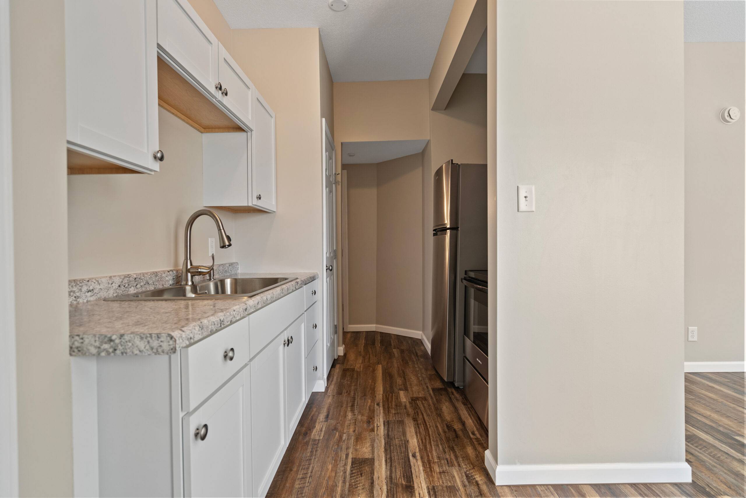 Multi unit renovation, original buildings were taken down to the studs entirely. New electrical service was installed in each of the 5 buildings, alongside new electrical wiring in each throughout. New plumbing was ran to each building with tankless water heater, and throughout the entire unit. New HVAC was installed which consisted on individual mini split units for each apartment. All exterior walls had new insulation installed. New drywall, with knockdown ceiling texture was installed in each building, including common space such as hallways. Custom tiles showers were installed in each unit. New kitchen cabinets with formica countertops, and stainless steel kitchen appliances. LVP flooring, and trim work consisting on baseboard, doors, casing, and closet shelving. Each building was newly painted on the exterior, and had new single hung vinyl windows installed, alongside new gutters, and exterior entry porches. All building are equipped with keypad deadbolts for each tenant to have a private code to enter the building. New concrete sidewalks were poured throughout the complex, alongside a new asphalt parking lot.